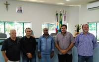 Mesa diretora 2018. Da esquerda para direita, Ver. Júlio, Ver. Raul (2º Secretário), Vagner (1º Secretário), Fábio (Presidente) e Genomar (Vice-presidente)